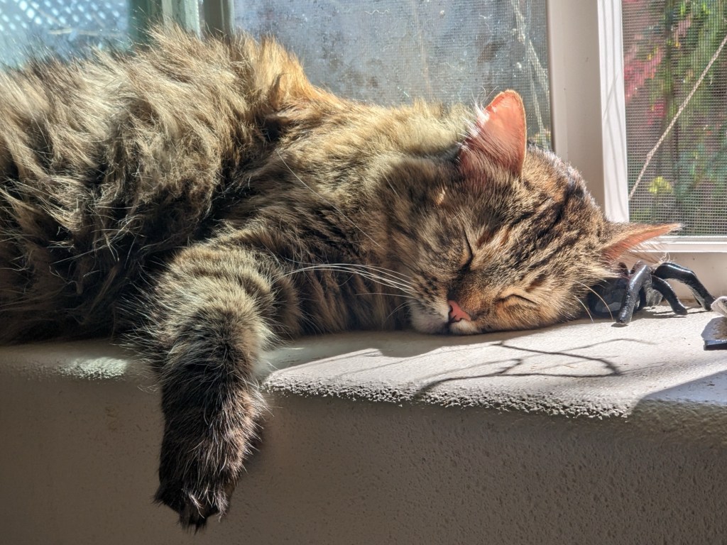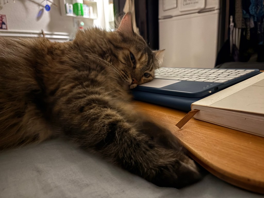 I’ve almost called her Kaeli or Cybelle. And I’ve noted she sometimes sounds like Ian. And she can be as surly as Sebastian. She’s the uber cat. I can’t face life alone frankly. And that’s my pet. That’s my shortcut reason for sticking around because she loves me and may understand but would be super pissed.