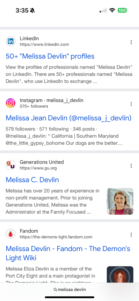 No wonder I want to die. Everyone seems to know things about a Melissa Devlin and won’t tell me what. Because she stole my pictures.