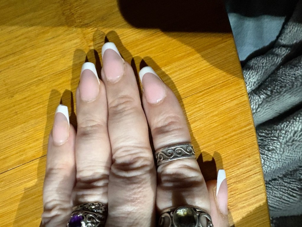 I’m hoping taking care of the outside will improve my mood on the inside. It’s a step up from “fuck it all”. But I’m learning ASL and thus looking at my hands a lot. I wanted them to be prettier.