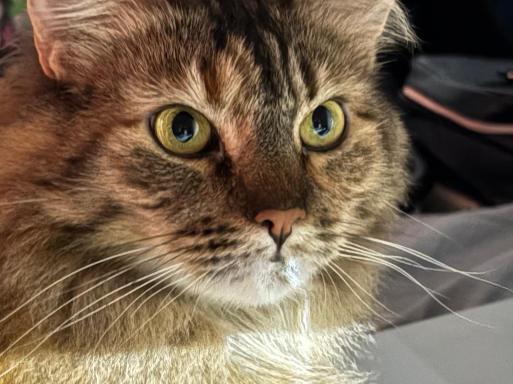 Because there’s confusion both pictures taken today. No opportunity for someone to switch cats. But one is a snapshot. The other is really good – from a different angle. Like my photos of me, angles and lighting matter!